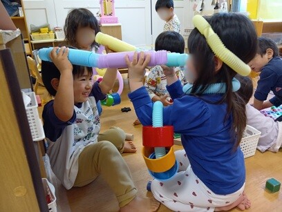 年上の子の真似をして遊ぶ姿も見られるようになりました。