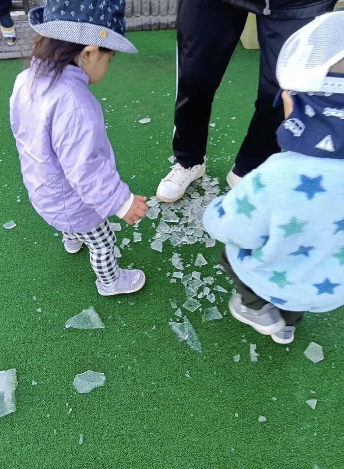 冬ならではの感触に触れて、不思議そうにしたり、笑顔が見られたり、色々な発見をたのしんでいたひよこ組さんでした!