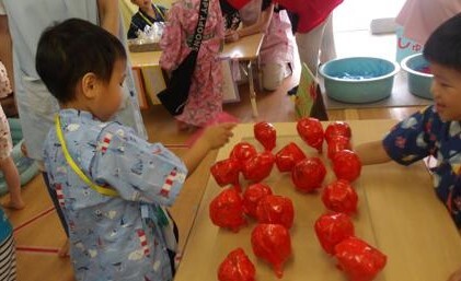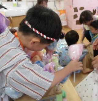 今年度の夏祭りも、ぞう組(5歳児)の子どもたちがやってみたいお祭りの出店を中心に開催しました。