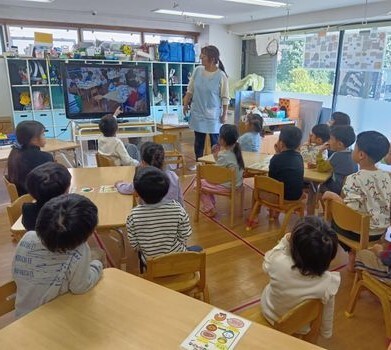 今月の食育②は、幼児クラスで食事マナーやお箸の使い方について行ないました。