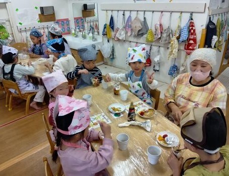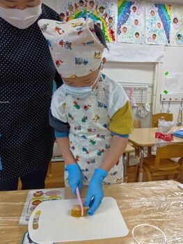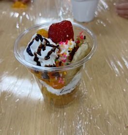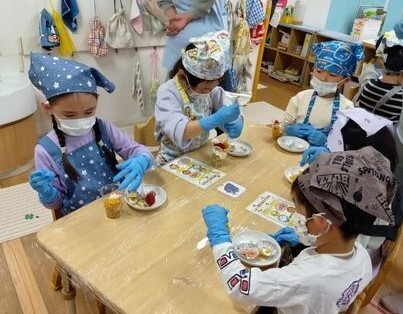 12月はパフェ作りを行ないました。ぞう組さんと買い出しをして、それぞれ担当の食材を自分で購入する体験もしました。