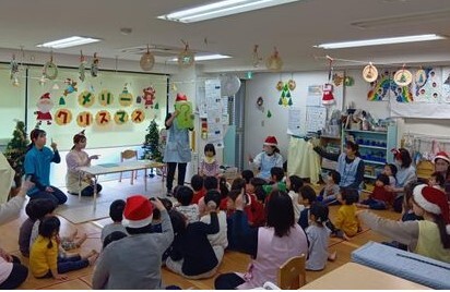 当日は、全クラスが集まり、「あわてんぼうのクリスマス」の歌を歌ったり、