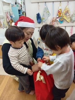 保育室にクリスマスツリーやクリスマスの装飾が増え、子どもたちが楽しみにしていたクリスマス会を行いました。