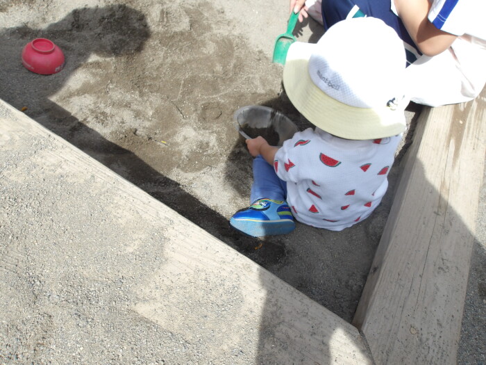 久しぶりの園庭だったからか、みんなお砂遊びに夢中!
