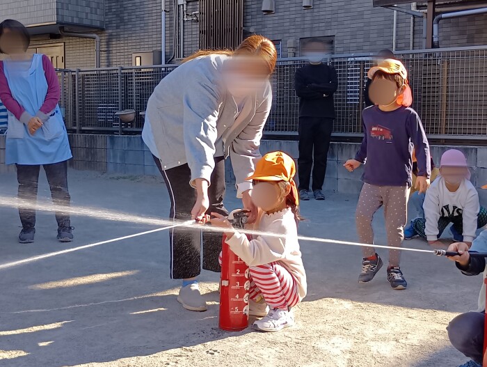消防士さんが来てくれて消火器の使い方を
