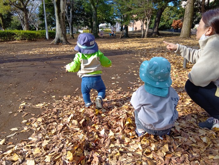 外で追いかけっこをしたり自由に歩いたりハイハイしたりと・・・
