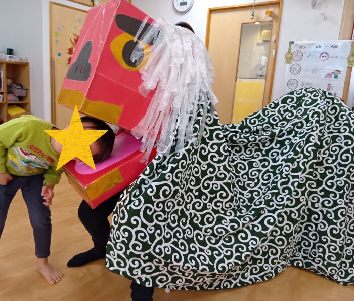 幼児クラスには大きな獅子舞が登場!