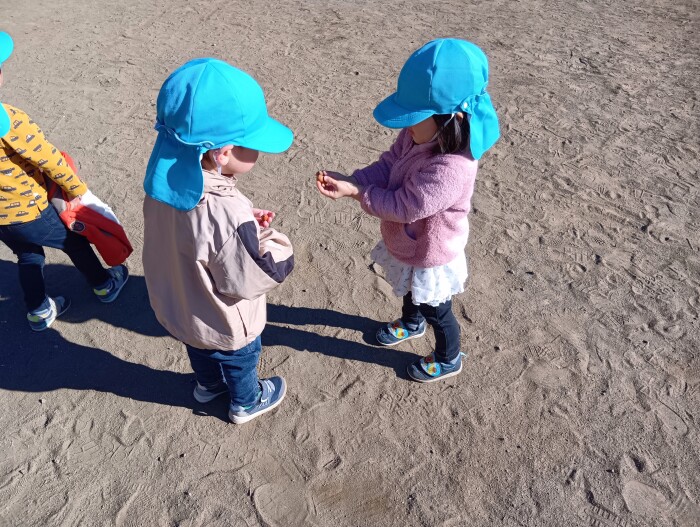 お散歩カーではなく、お友だちと手を繋いで歩いて行けることに成長を感じます。