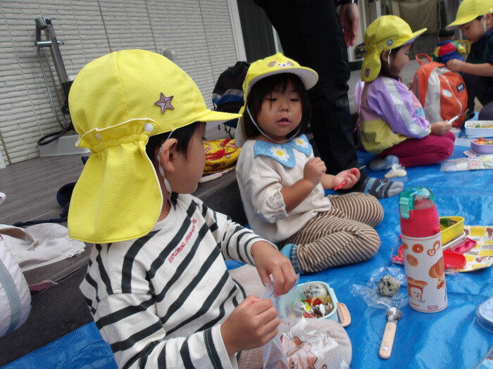 お家の方が作ってくださった素敵なお弁当を秋晴れの気持ちの良い中みんなで
