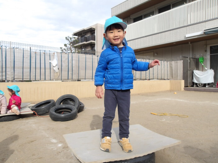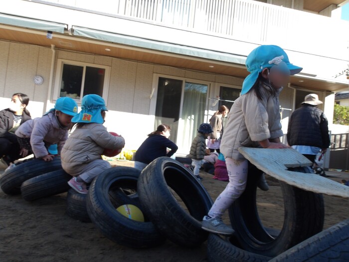 うさぎ組は、タイヤを使った運動遊びが大好きです!