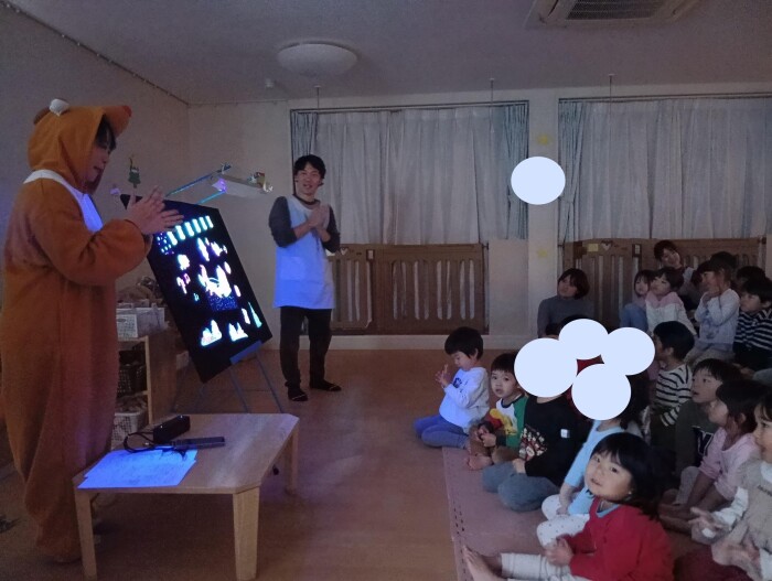 歌に合わせて、イラストが次々に出てくると、子どもたちの目も