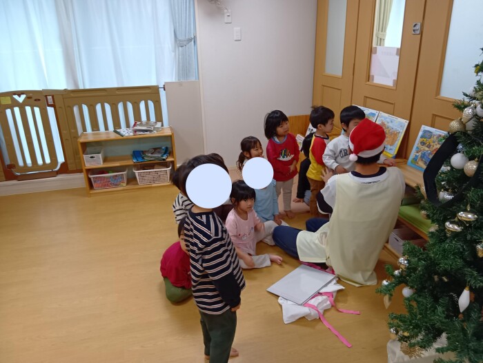 クリスマス会の後は、もらったプレゼントを各クラスで開封して