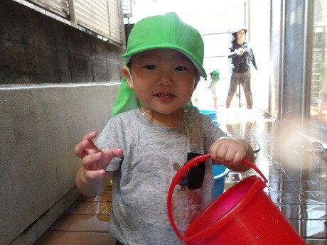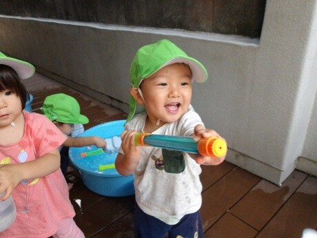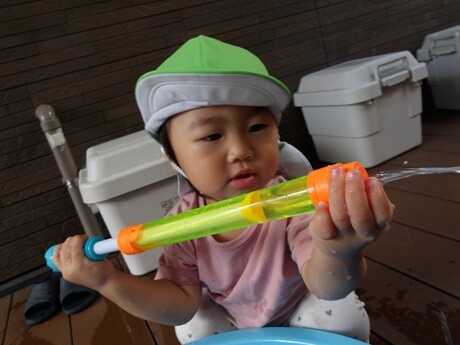 水鉄砲の使い方を教えるとすぐにマスターしてしまう子も!