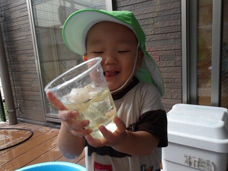 氷は「冷たーい!」と言いながらほっぺにくっつけてみたり、手のひらで握ってみたり。