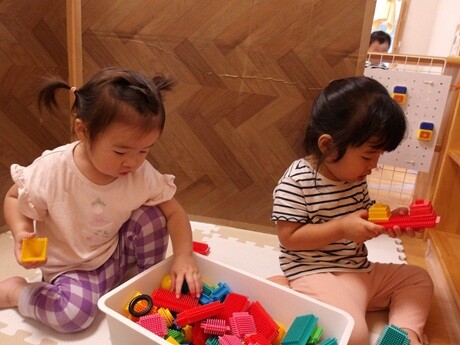 先生やお友だちと協力してどこまで大きなお家が作れるか、今では毎日「お家作ろ〜」の声が飛び交っています?