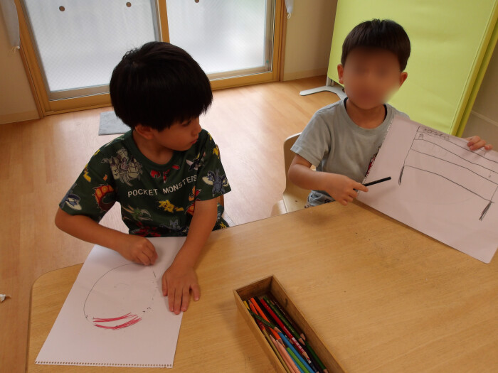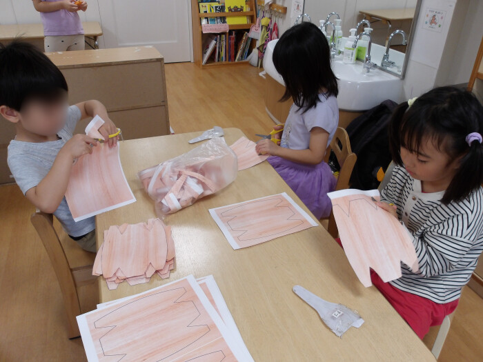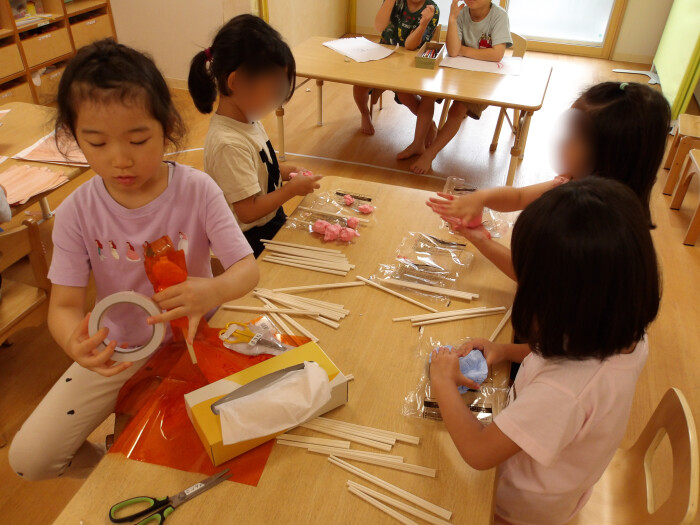 自分たちで考えて決めたお店屋さんがよほど楽しみだったようで、活動予定にない日でも「今日は夏祭り準備しないの?」「やりたい!」と意欲満々でした。