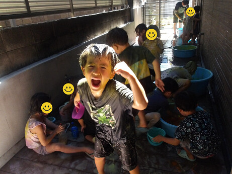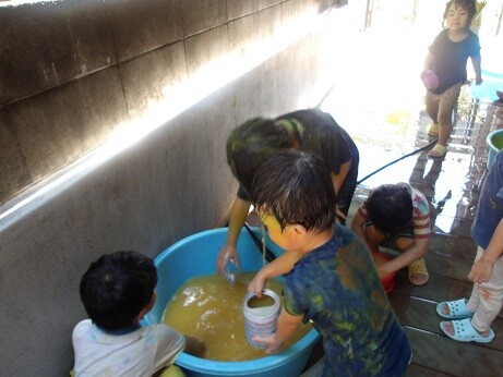 8月は水遊びにプール、色水、泡遊びなどいろんな感触に触れながら、『涼』を感じて遊びました。