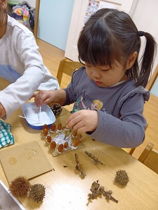 さっそく初日からどんぐりケーキ作りに挑戦している子もいました。