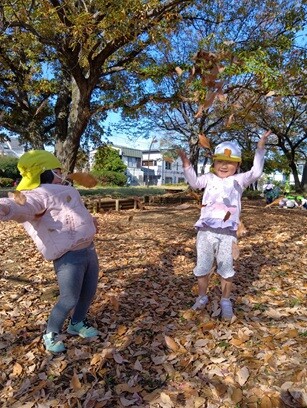 公園に行けば、「あ!ここどんぐりたくさん落ちてるよ」「綺麗な色の葉っぱがいっぱいだね」と季節の移り変わりにも気づき