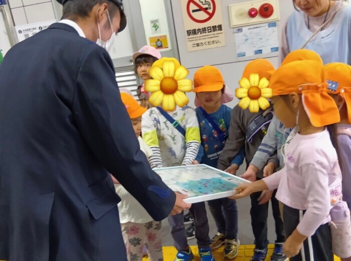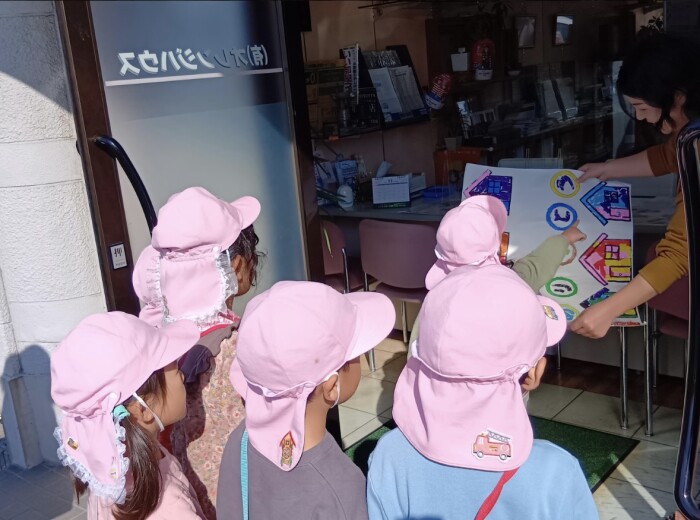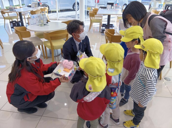 幼児クラスのみんなで勤労感謝の日の取り組みとして地域のお世話になっている方々へプレゼントを届けに行ったりしました。