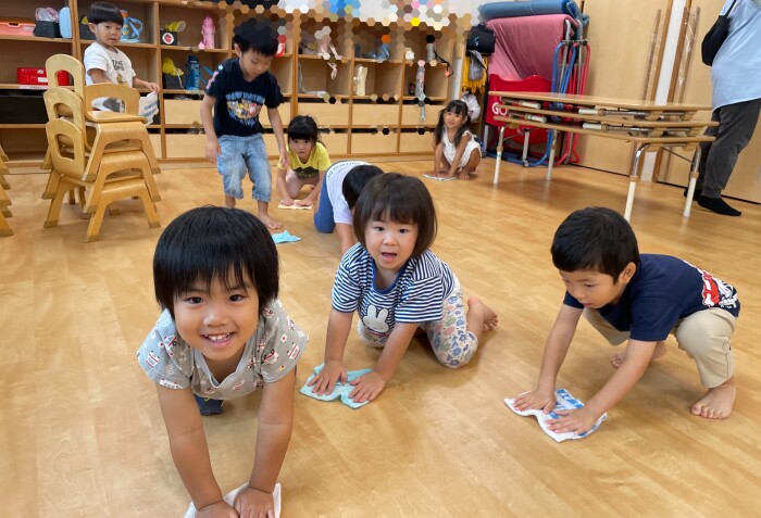 テーブルの下に、椅子も動かして拭かなくちゃ!