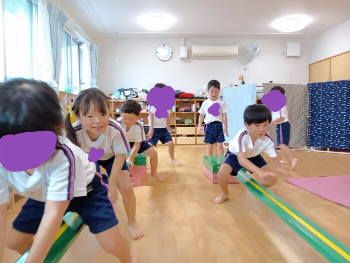 楽しく体を動かし、時には難しい動きもあるけれどあきらめず挑戦するみんな!