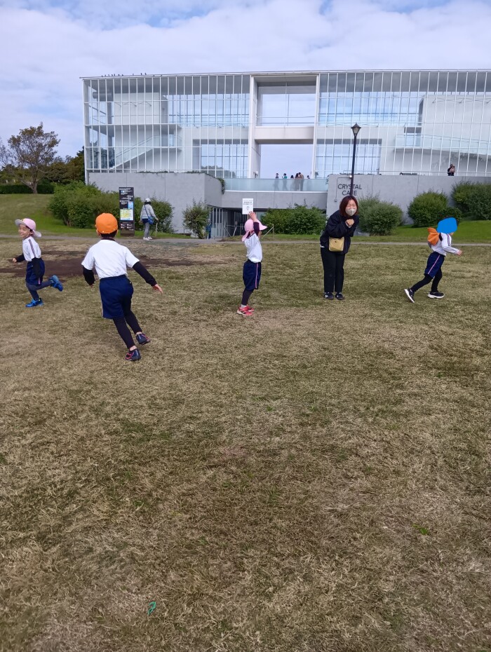 心地よい気候の下、普段あまり関わる時間の限られているひよこ組やりす組、うさぎ組の先生とも一緒に広い広場で氷鬼をしたよ~!!