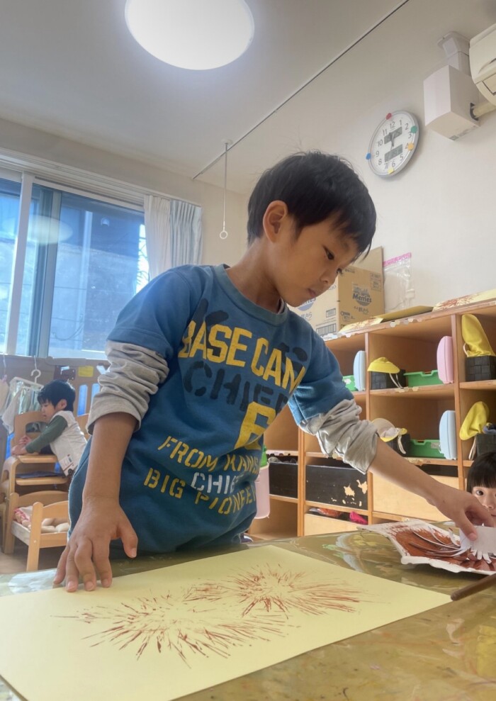 暖かさが残るお芋に、 「あったかいね」「ほかほかだね」とにっこり。
