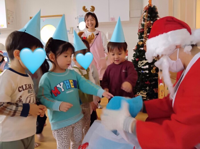大喜びの子もいれば、いきなりのサンタさんにびっくりな子も!