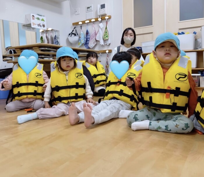皆でライフジャケットを着て、