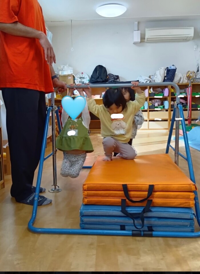 鉄棒にぶら下がったり、くぐってみたり!!