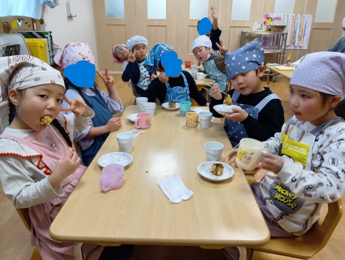 1月の食育は「たこやき(タコなし)クッキング」でした。