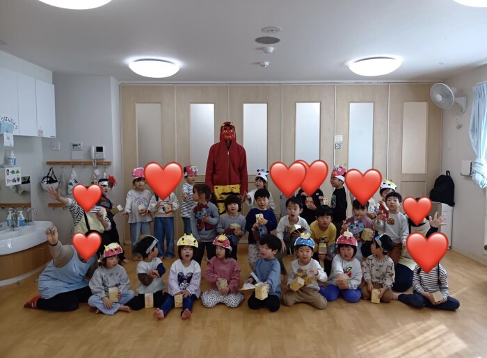 2/3は節分の日でした。節分前から制作や絵本で行事に触れていたので、子どもたちは「ソワソワ」「ドキドキ」な様子でした。
