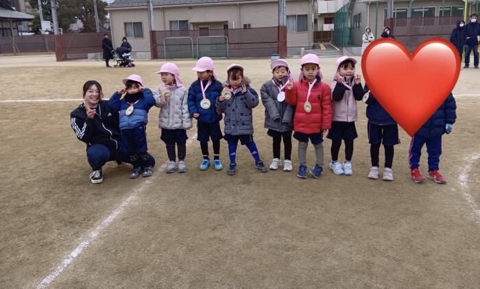戸外活動の際の遊ぶ前に、マラソンの練習を行っていた子どもたち。初めたばかりの頃は、すぐに疲れてしまったり、スタートダッシュを決めすぎて、息が持たなかったり、、、様々な姿がありました。