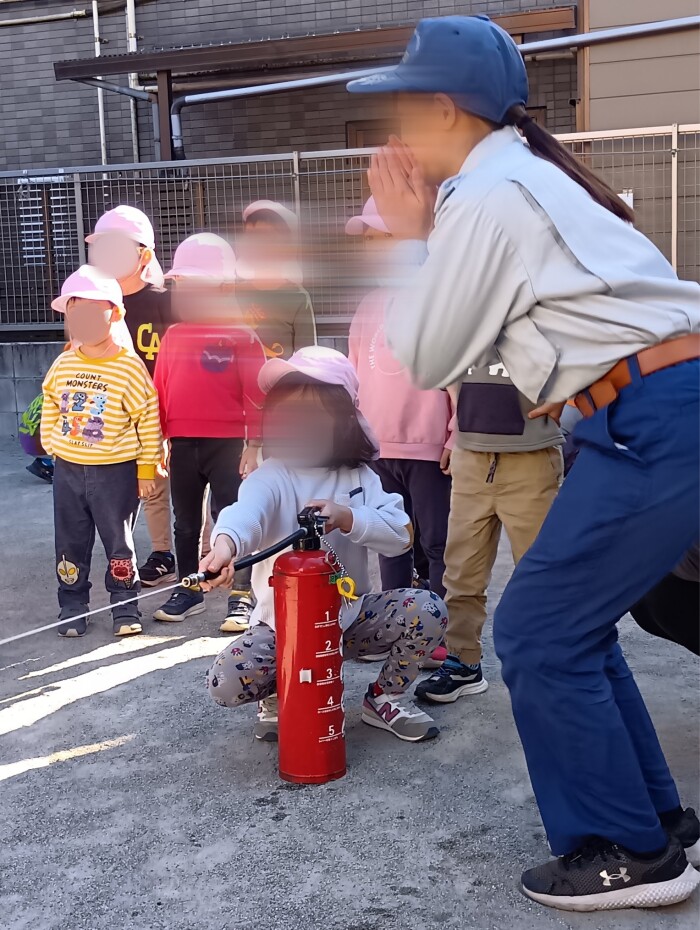 消防士さんが来てくれて消火器の使い方を