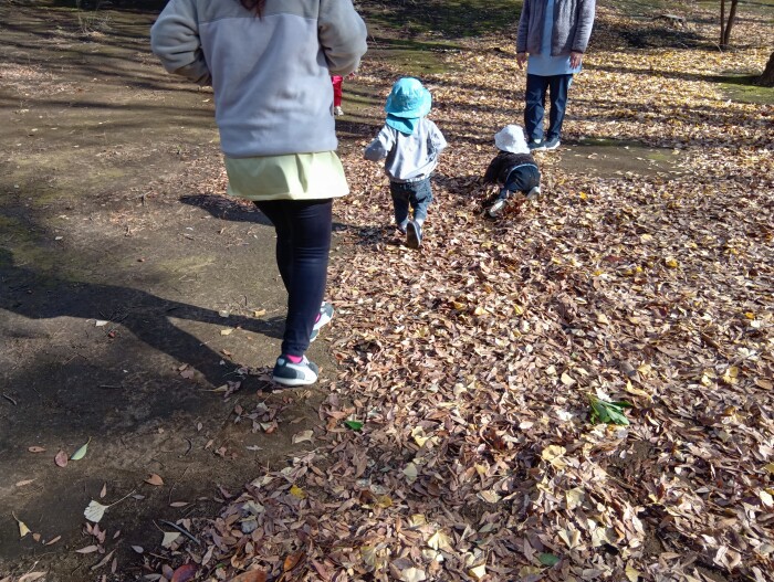 外で追いかけっこをしたり自由に歩いたりハイハイしたりと・・・