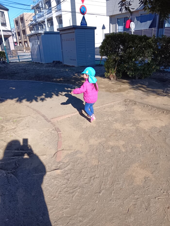 お散歩カーではなく、お友だちと手を繋いで歩いて行けることに成長を感じます。