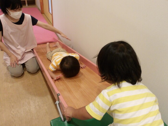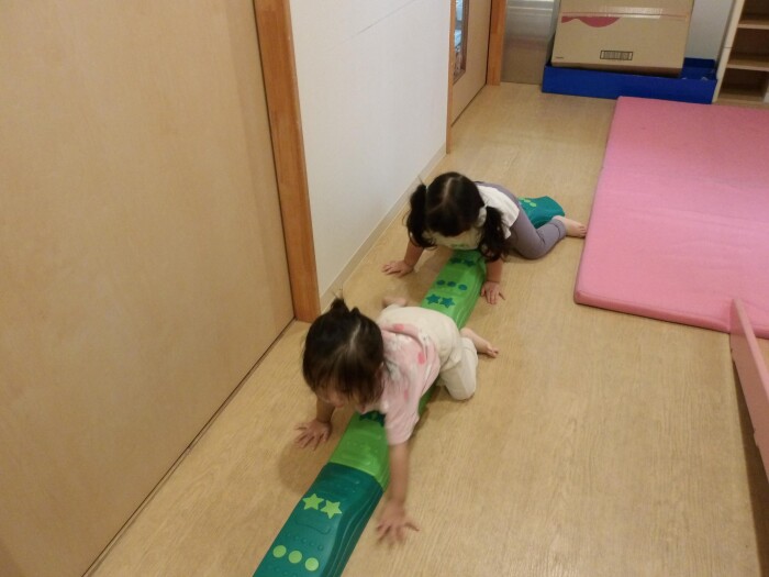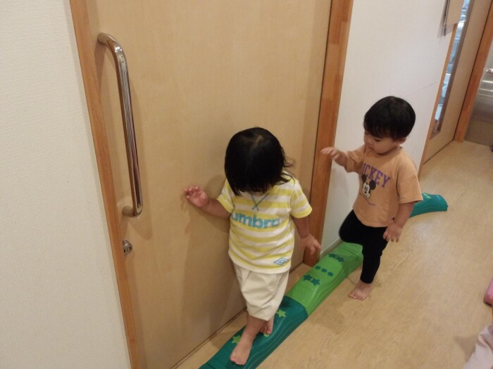 走ったり飛び跳ねたりと巧技台をよじ登ったり