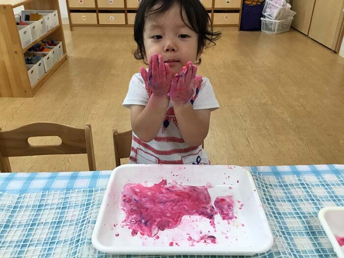 「マヨネーズみたーい♪」「トロトロだ〜」と変化する感触に興味津々!