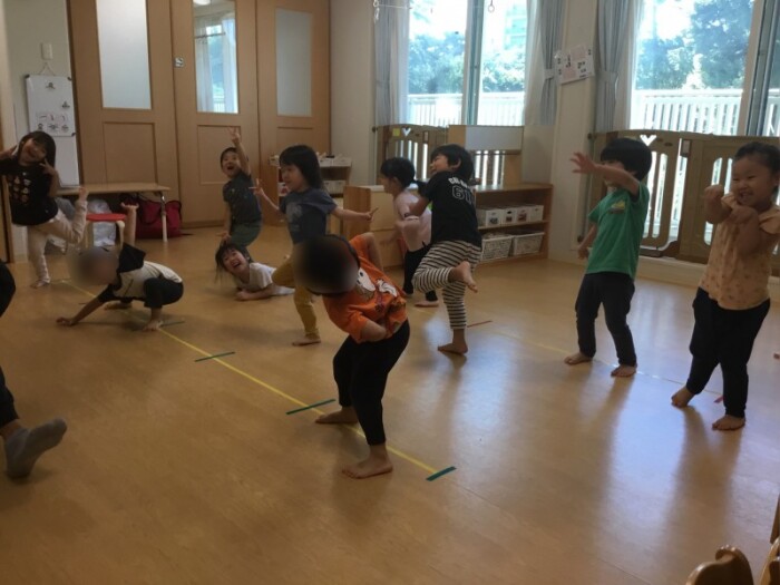 ダンスの中で「自由に踊ってみよう!」「寝てみよう!」