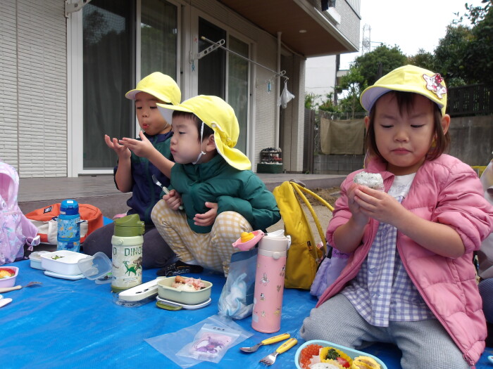 お家の方が作ってくださった素敵なお弁当を秋晴れの気持ちの良い中みんなで
