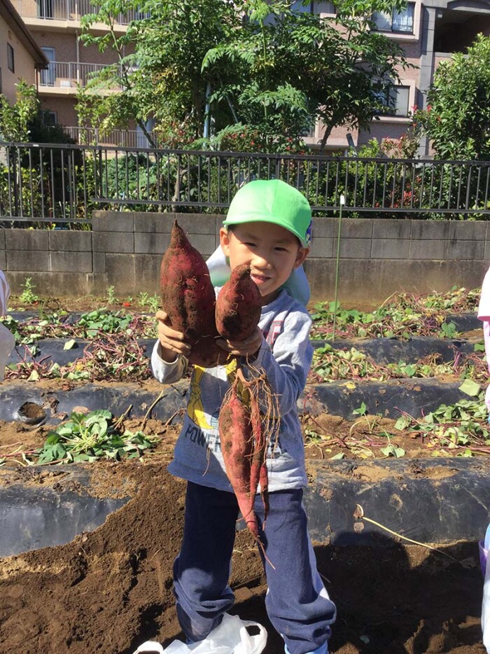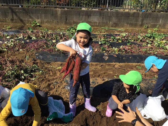「んー…採れたー!」「先生、見て!さつまいも採れたよ!」