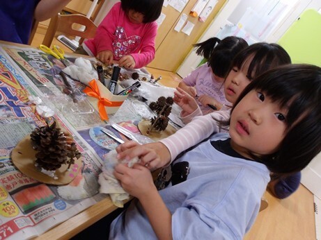 そして集めてきた木の実たちでようやく製作タイム✏️??