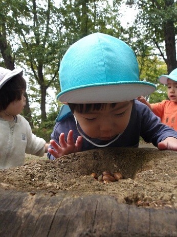 小さなどんぐりや帽子をかぶっているどんぐりなど様々な発見をしていましたよ。
