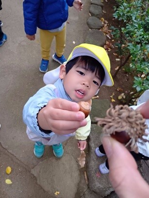 公園に行けば、「あ!ここどんぐりたくさん落ちてるよ」「綺麗な色の葉っぱがいっぱいだね」と季節の移り変わりにも気づき