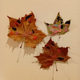 まずは拾ってきた大きなカエデの『葉っぱにお絵描き』♪