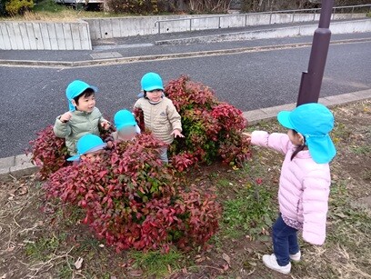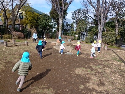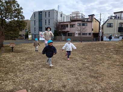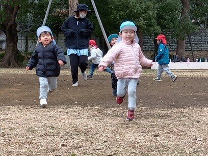 特に戸外遊びでは鬼ごっこやかくれぼなどの簡単なルールのある遊びを楽しんでいます。