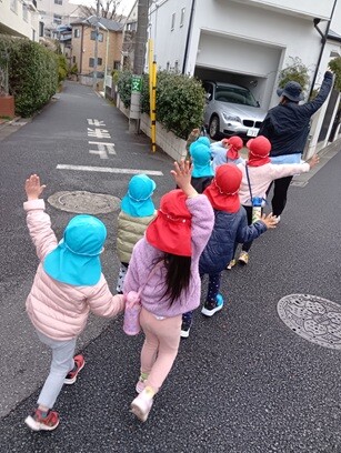 行き帰りはお兄さん、お姉さんに手を繋いでもらって歩くととても嬉しそうでした!