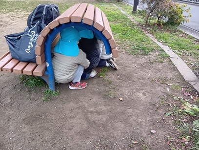 また、異年齢で遊ぶ機会も少しずつ増えてきてぱんだ組とは与謝野公園に行き、くま組とはシーソー公園に行って一緒に遊びました。