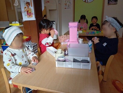 年上の子の真似をして遊ぶ姿も見られるようになりました。